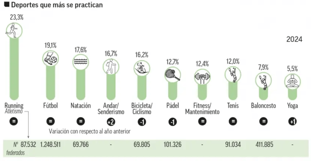 Hay tanta obsesión por el pádel que en ciudades como Madrid ya es más practicado que el tenis, baloncesto o atletismo, y solo superado por el fútbol.