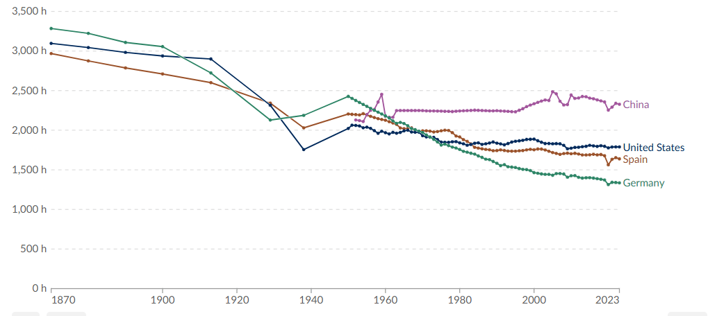 En 1870, una persona promedio trabajaba hasta 3.000 horas al año. En otras palabras: