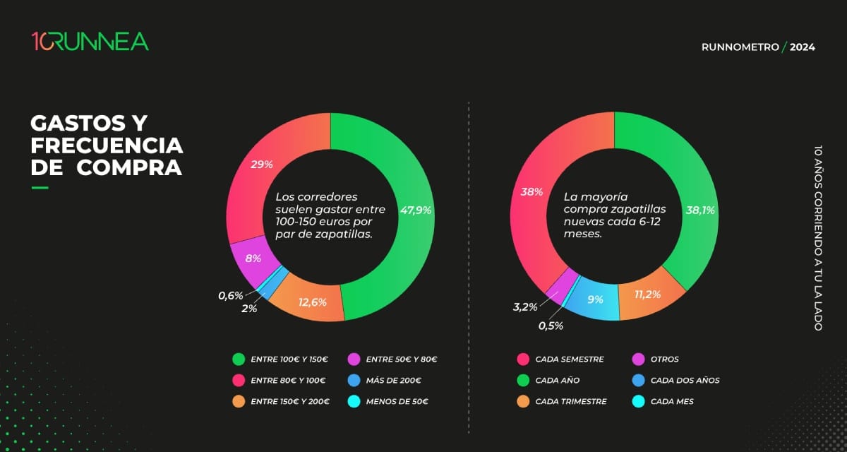 Solo 1 de cada 3 runners (37,6%) gasta menos de 100€ por cada par de zapatillas. Los otros 2, más de 100€.