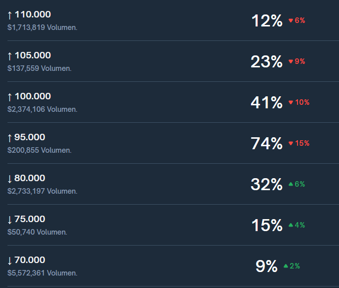 Según Polymarket, lo más probable es que supere los de $95.000 durante este mes:
