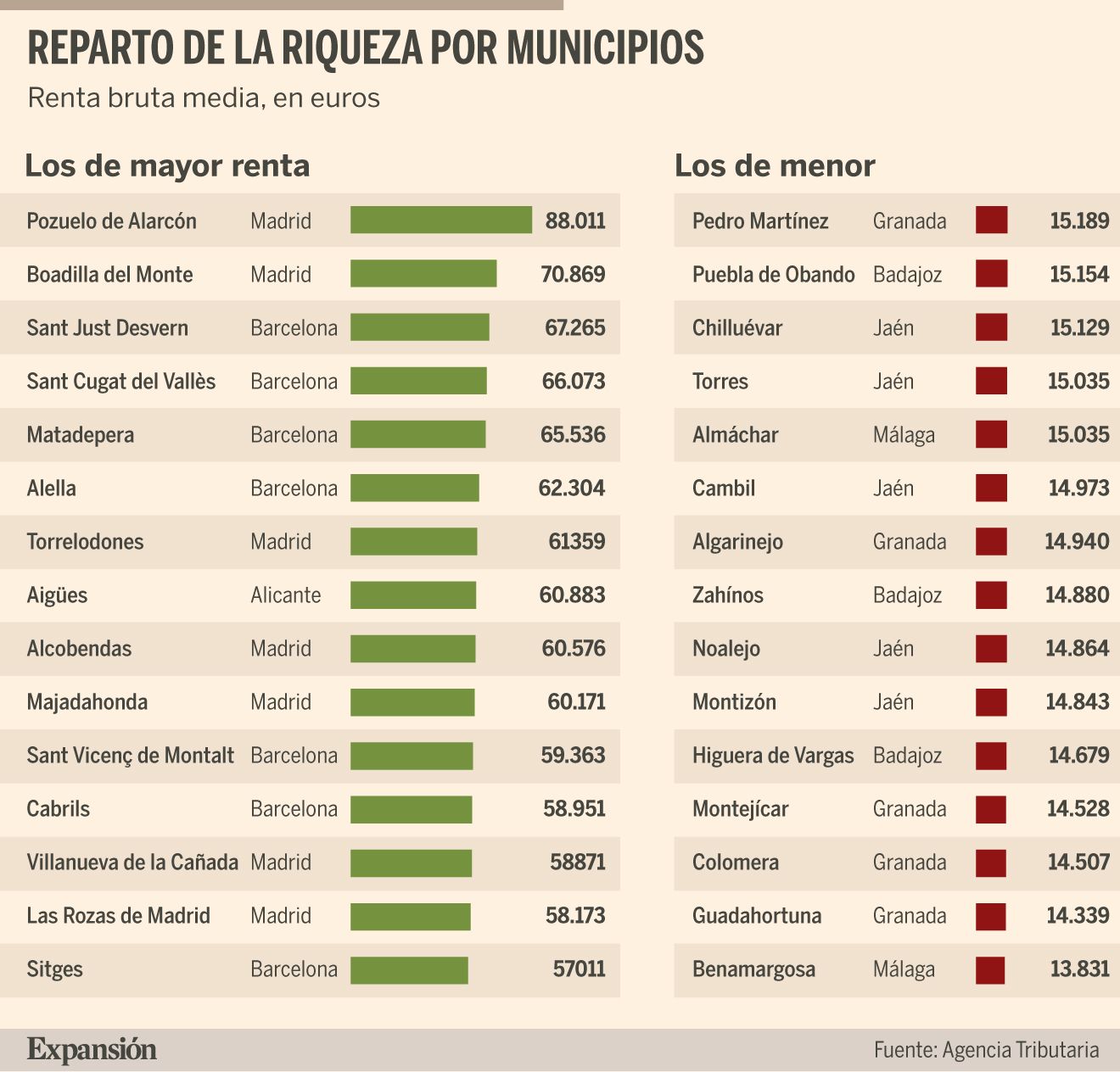 Hablando de renta: los municipios de España con mayor y menor renta media