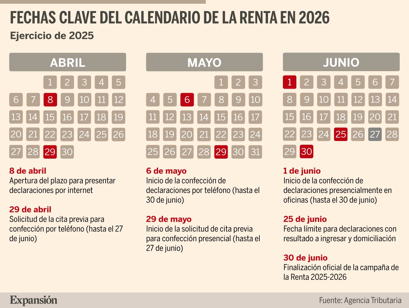 Todas las fechas que necesitas saber de la renta 2026 (España)
