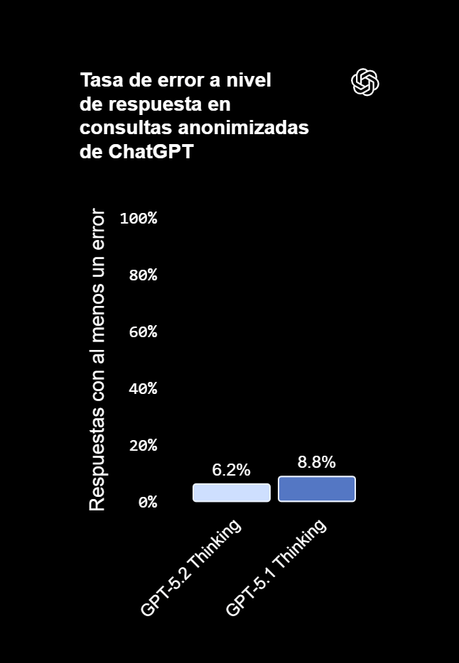 Otro gran avance que siempre aparece en cada actualización, igual que reducir alucinaciones. GPT 5.2. codifica mucho mejor.